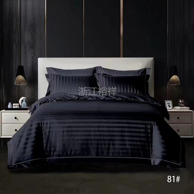 Hotel Pure Stripes Solid Color Four-Piece Thickened Bed Sheet Hotel Bed Quilt Four-Piece/Three-Piece Set